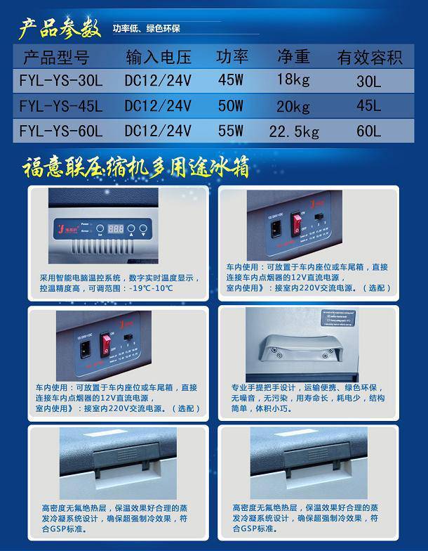 生物检材冷藏箱 采血样标本冰箱2-8度车载供电产品用途: